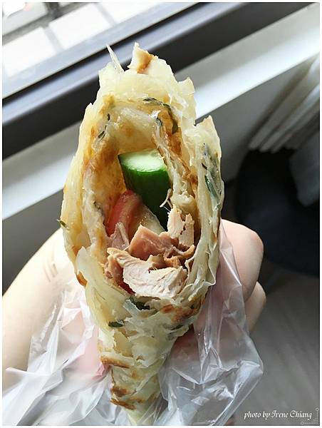 接著就用抓餅把愛吃的雞肉和蔬果捲捲捲~捲起來就對了!